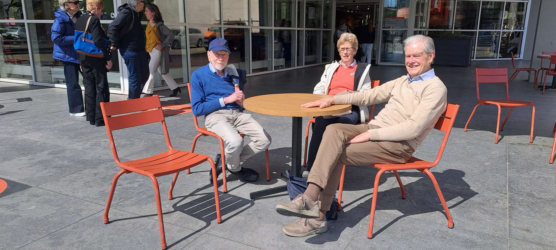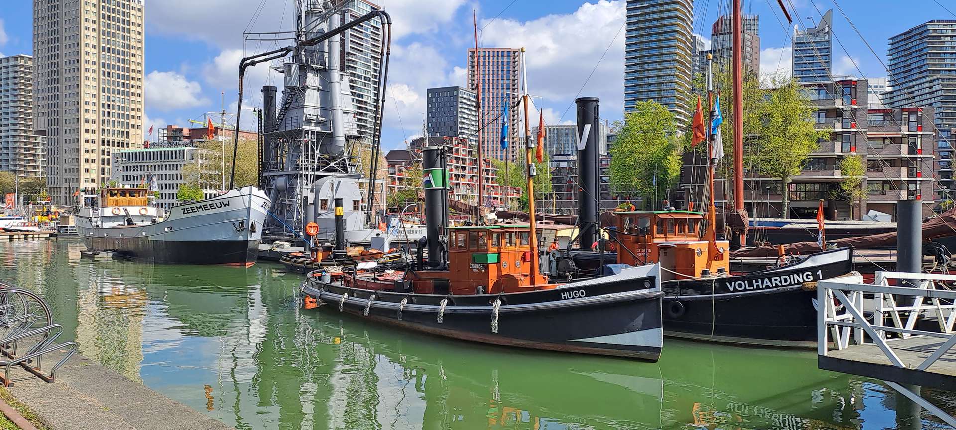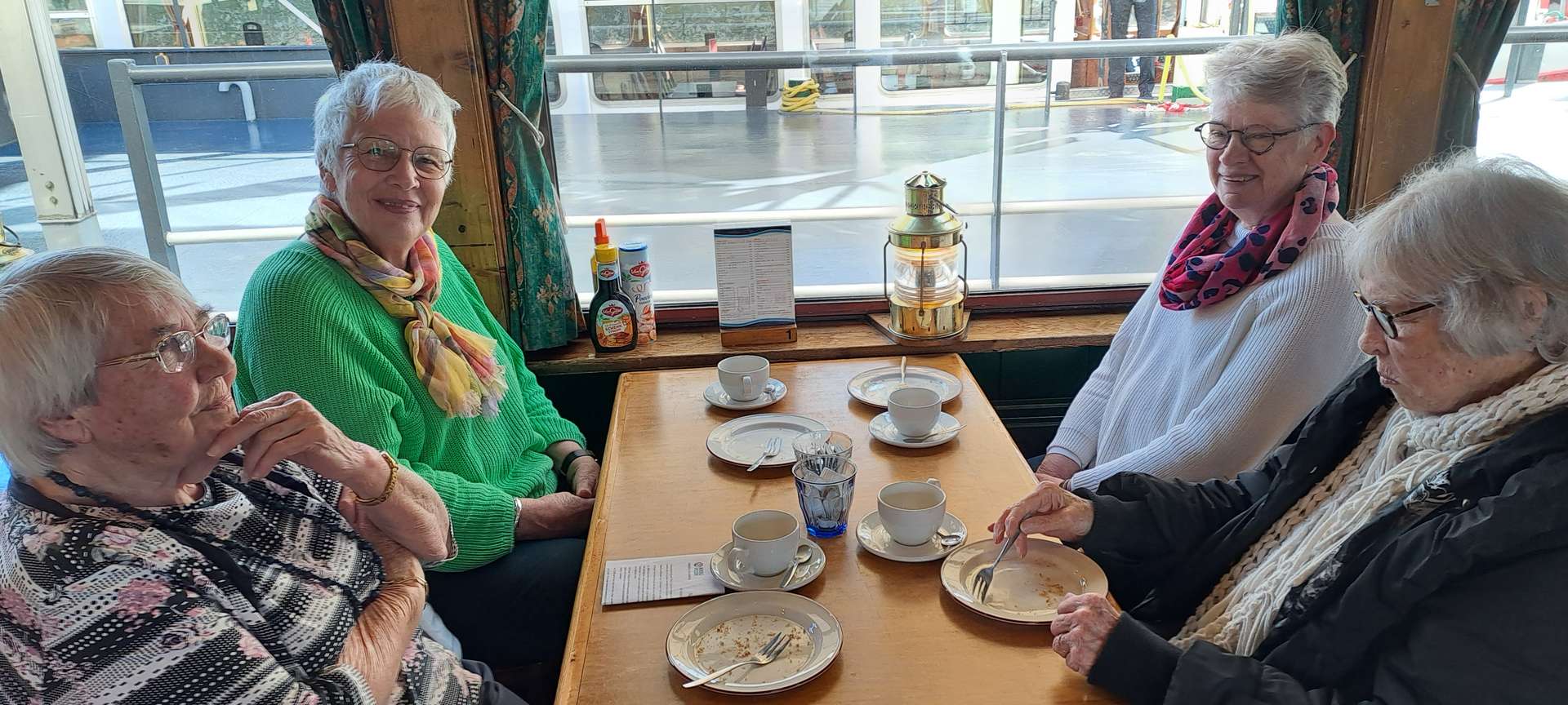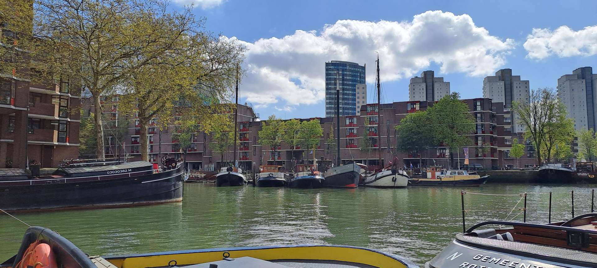 Na de koffie ging het richting het Maritiem Museum. Een groot, modern gebouw, goed toegankelijk voor onze rollatorgebruikers, met veel informatie over Rotterdam: De geschiedenis vanaf de allereerste nederzetting aan de monding van de Rotte, de grote groei in de Gouden Eeuw, het bombardement in 1940 en de stad nu met zijn grote verscheidenheid aan inwoners. Natuurlijk veel aandacht voor de havens die zich in de loop der eeuwen steeds meer vanuit het centrum van de stad richting Noordzee verplaatsten. Voor de scheepswerven die periodes van groei en van achteruitgang kenden en aan zoveel mensen werk verschaften, dat er hele dorpen voor werden gebouwd. En dankzij het schitterende weer, was het heerlijk om de schepen te bewonderen, die in de buitenhaven liggen of gewoon even lekker op een bankje daarnaar te kijken.