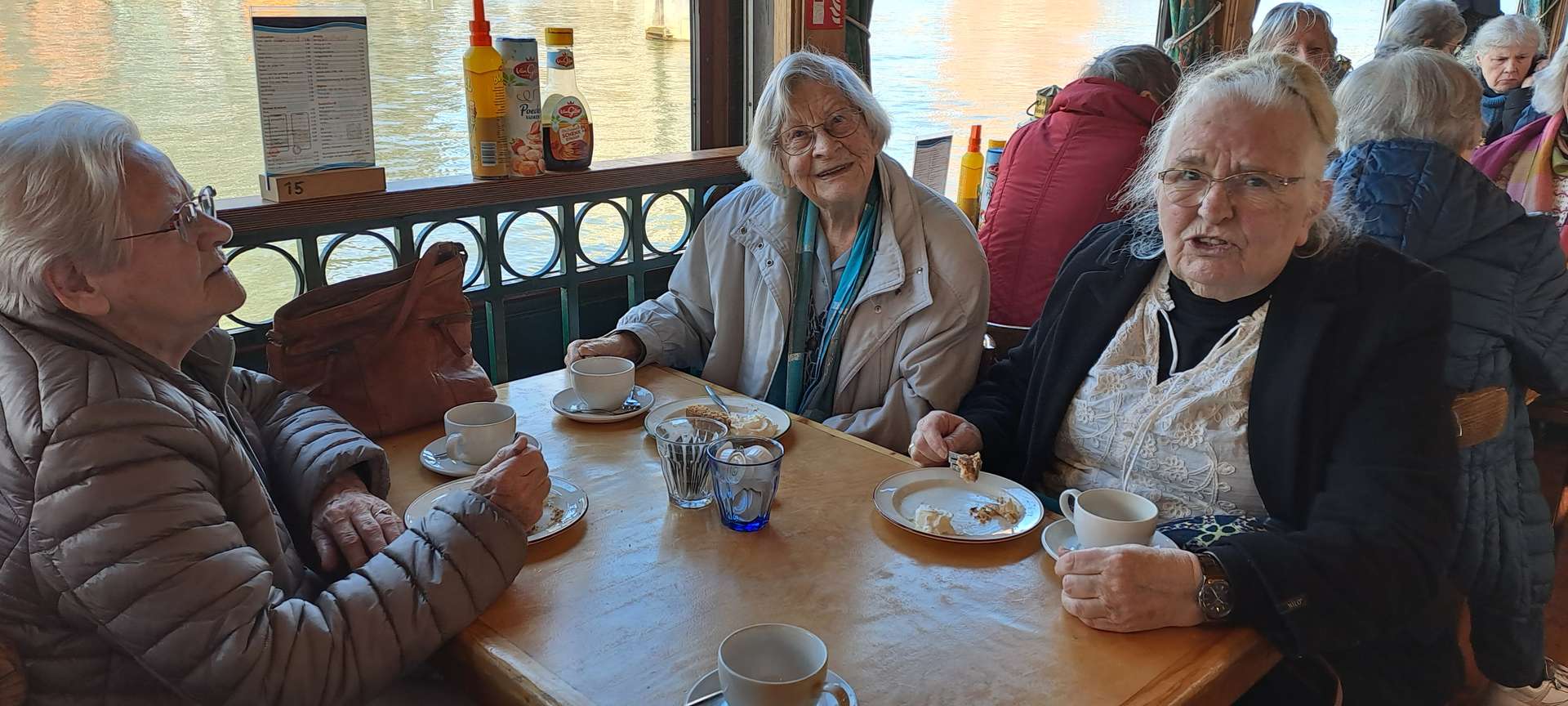 We bleken in de voormalige spelersbus van Feyenoord te reizen! Zoals gewoonlijk startten we met koffie met gebak. Daarvoor konden we terecht op de pannenkoekenboot, afgemeerd aan de voet van de Euromast.