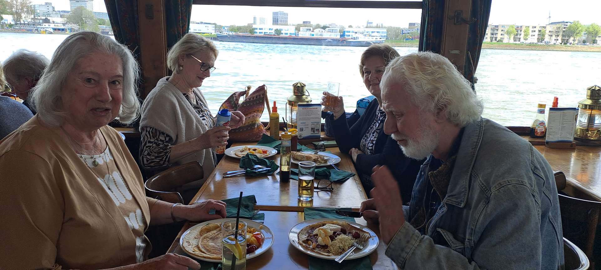 Hierna was het tijd voor een late lunch waarvoor we weer naar de pannenkoekenboot gingen. Terwijl we een stuk over de Nieuwe Maas voeren en de stad vanaf het water konden bewonderen, liet iedereen zich de pannenkoeken goed smaken.