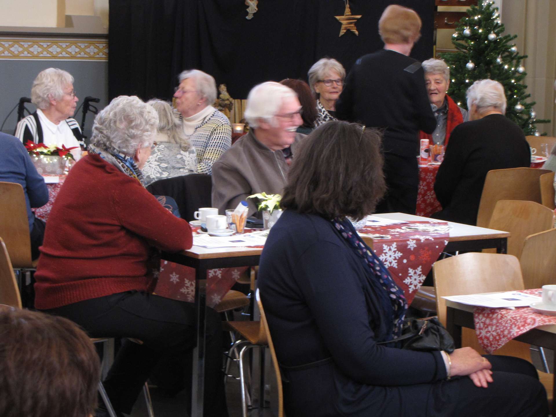 Om twee uur heette Hans Kapteyn een volle zaal welkom, waarbij hij ook de Anna Martinastichting bedankte voor de subsidie die dit gebeuren opnieuw mogelijk maakte. Deze middag was gewoontegetrouw gericht op ontmoeting in een gezellige omgeving met volop gelegenheid om met elkaar te praten, te eten en te drinken en, vanzelfsprekend in deze kersttijd, te zingen.