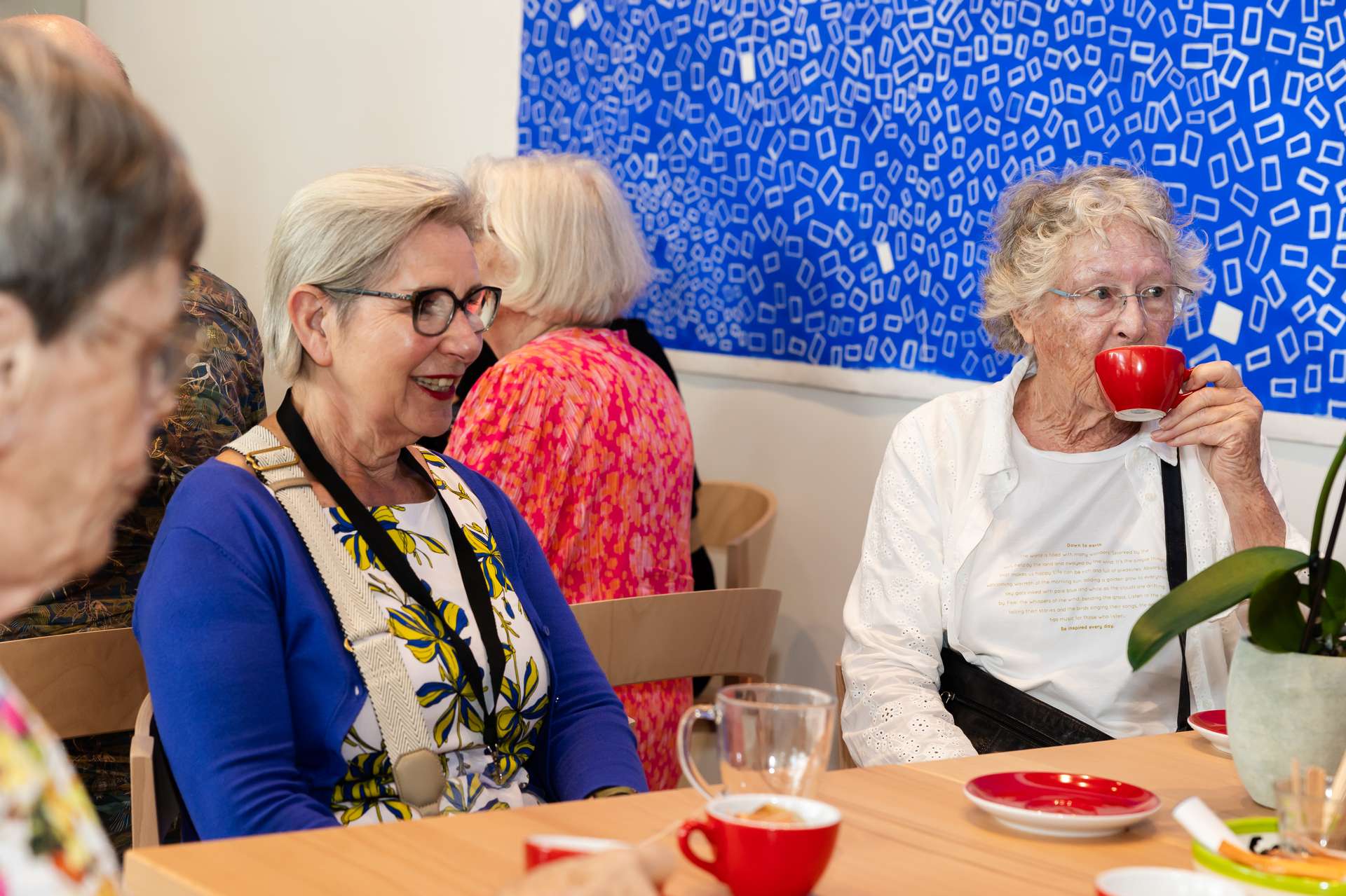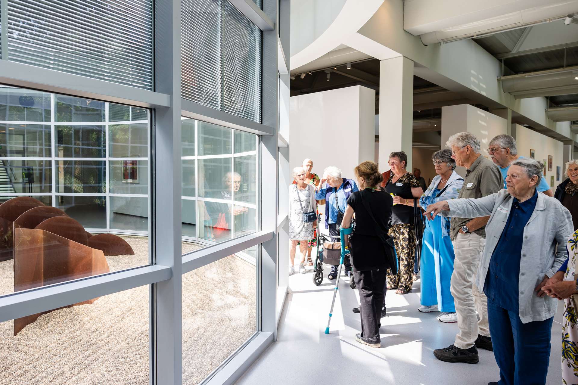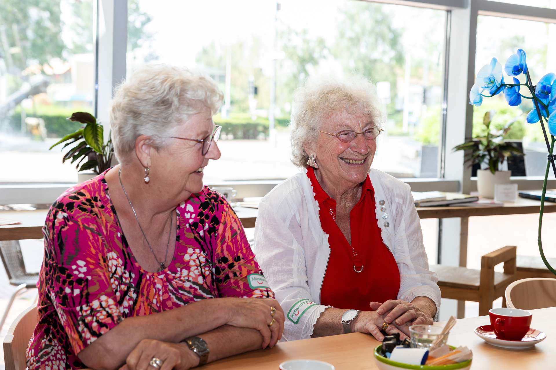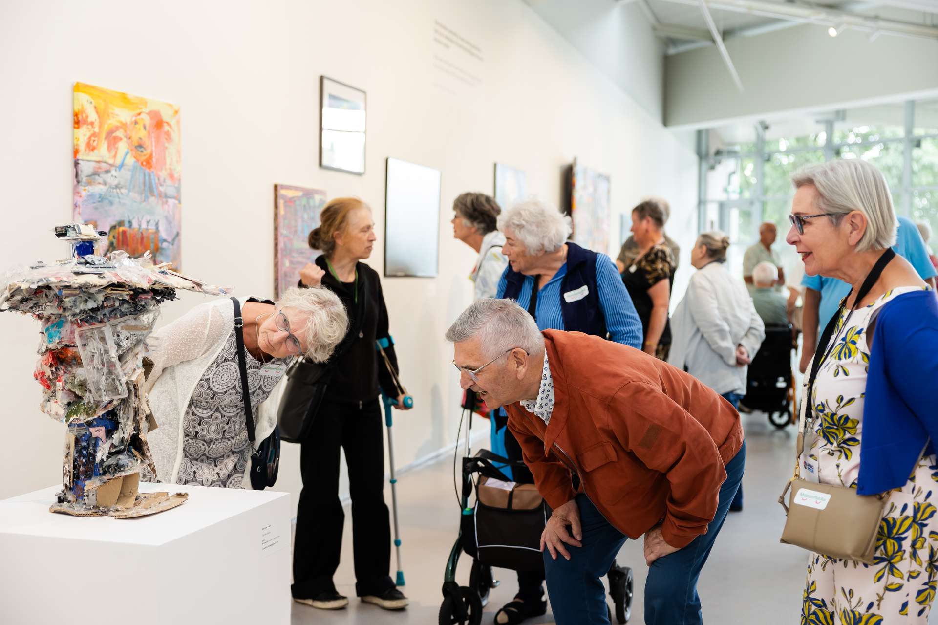 Vandaag zijn we op bekend terrein, want voordat Dieuwertje Tromp 15 jaar geleden bij de Museum Plus Bus begon, werkte ze bij het Museum Cobra. Dieuwertje legt uit waarom kunst en een museumbezoek zo van belang zijn. “Kunst is zo’n krachtig middel, het spreekt aan tot diepe lagen. En dan hoef je geen kennis van kunst te hebben. Het prikkelt zintuigen en raakt mensen. Het is geweldig dat we met de Museum Plus Bus mensen, voor wie dat niet vanzelfsprekend is, naar musea kunnen brengen. We krijgen ontzettend veel aanvragen, meer dan we aankunnen. We hebben sinds een aantal jaar ook de rijdende tentoonstelling. Daarmee komen we op locatie met replica’s van topstukken. Er zit van alles tussen, ook kunstwerken die refereren aan herinneringen. Landschappen, molens, stadsgezichten. Voor mensen met bijvoorbeeld dementie kan dat veel oproepen. Net als bij onze museumbezoeken zijn er bij deze tentoonstellingen ook museumdocenten aanwezig die mensen op allerlei manieren betrekken bij de werken, bijvoorbeeld ook met geuren die bij de schilderijen horen. Echt een bijzondere ervaring.”